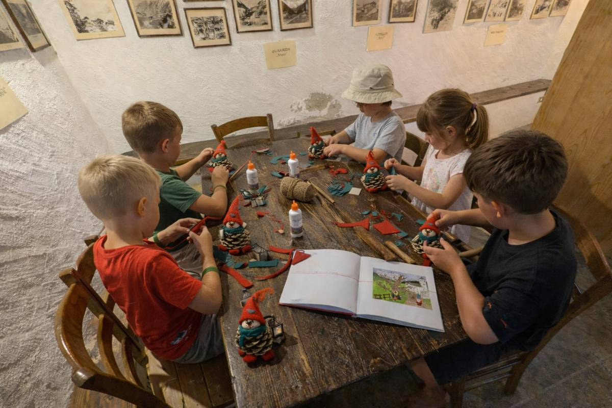 Walking along the Miners’ Trail accompanied by a hiking guide, you will discover interesting facts about the area and the Guia Gold Mine, which you will visit in the hamlet of Fornarelli. After a short walk of about 5 minutes, you will reach the Antica Casa Walser museum in the hamlet of Borca. Here, adults will take a journey back in time, discovering the secrets of the Walser community, an ancient Alpine population that settled in Macugnaga starting from the 1200s. Meanwhile, children will have fun taking part in a fantastic creative workshop, where they will create their own backwards-footed gnomes, the Gotwiarghini: small and mischievous forest goblins of Walser tradition who wander through the heart of Macugnaga with their lanterns!